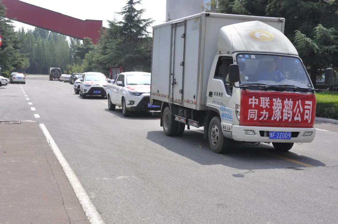 ▲豫鶴同力愛心車隊(duì)滿載物資出發(fā)
