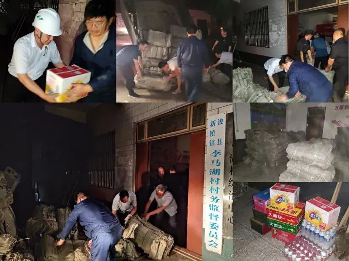 7月23日晚,所屬鶴壁同力水泥公司黨委組織部分黨員干部,連夜將3萬余條編織袋、礦泉水、方便面等急需物資,以最快的速度送至??h新鎮(zhèn),助力前線抗洪搶險(xiǎn)。