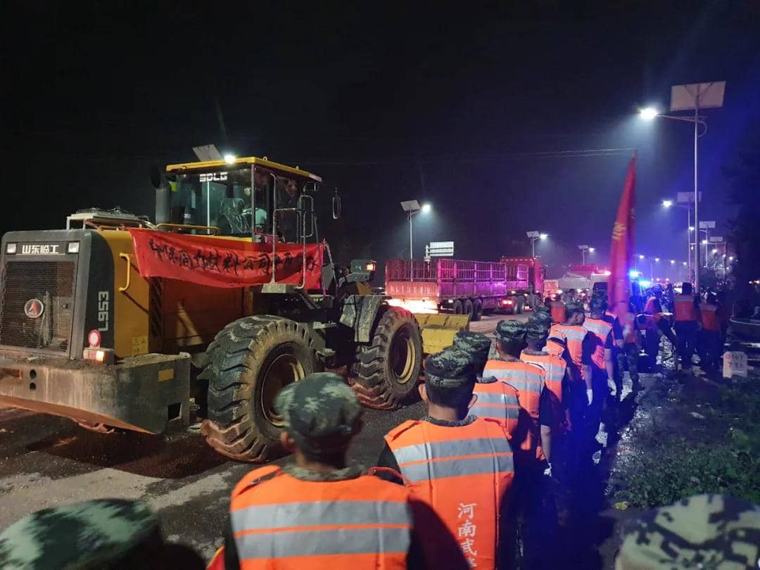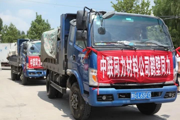 ▲鶴壁同力第二批捐贈(zèng)物資抵達(dá)抗洪前線