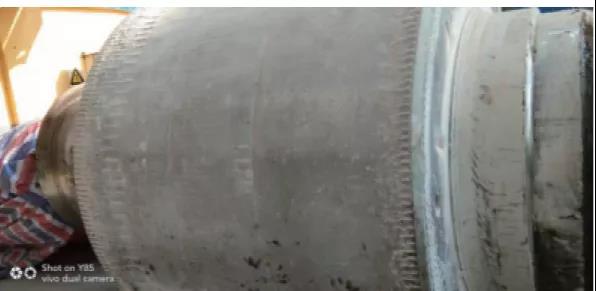 圖:新型鑄釘輥現(xiàn)場修復(fù)