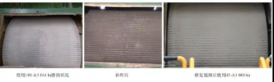 輥面鋪焊周期由原來的3個(gè)月(生產(chǎn)86萬噸生料)一次,提升到現(xiàn)在的6個(gè)月(生產(chǎn)142萬噸生料)一次,原來鋪焊需要車削露出母材,現(xiàn)在可直接鋪焊,鋪焊時(shí)間從原來的12天降低到現(xiàn)在的4天,單次維修費(fèi)用由原來的20萬元降低到現(xiàn)在的6萬元。