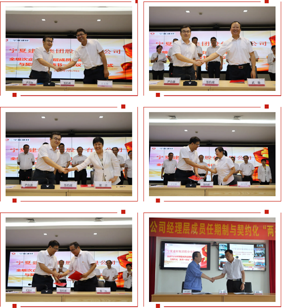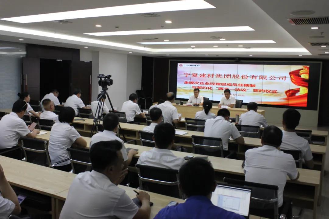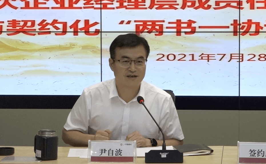 2021年7月28日,寧夏建材集團(tuán)股份有限公司舉行全級(jí)次企業(yè)經(jīng)理層成員任期制與契約化“兩書一協(xié)議”簽約儀式。公司董事長(zhǎng)尹自波、總裁王玉林以及其他經(jīng)理層副職人員、職能部室全體成員和所屬成員企業(yè)經(jīng)理層成員、中層以上管理人員參加了本次簽約儀式。