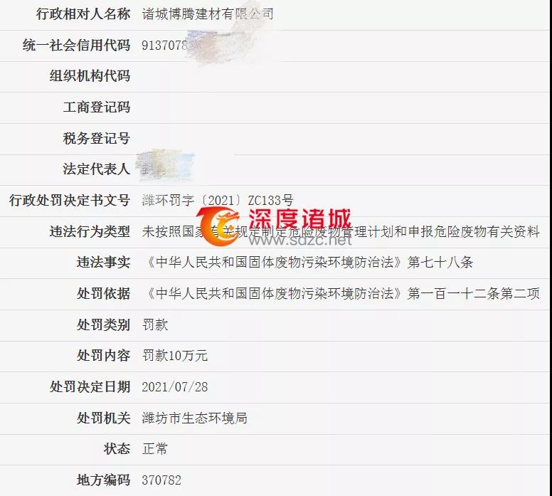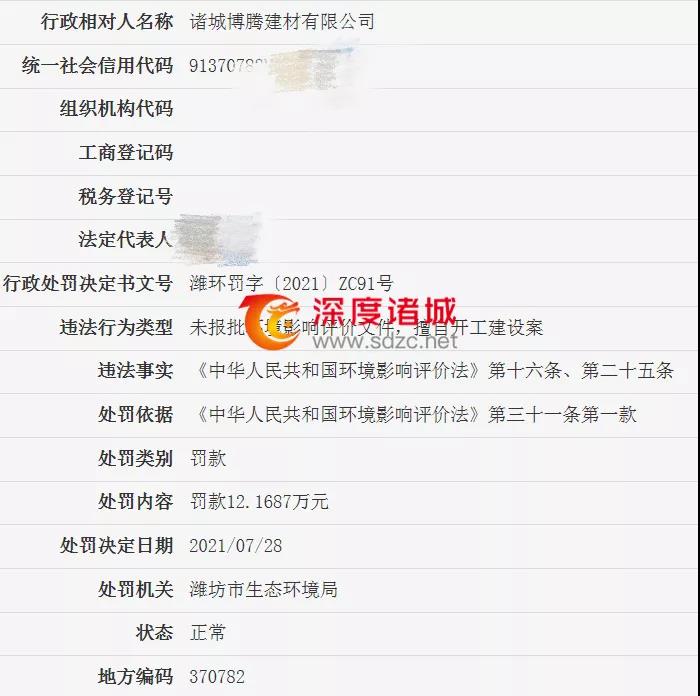 近日,濰坊市生態(tài)環(huán)境局公布信息,諸城多家單位因違法被處罰: