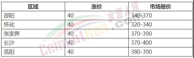 江蘇、浙江、安徽、湖南、江西等多地推漲水泥價格,最高漲60元/噸