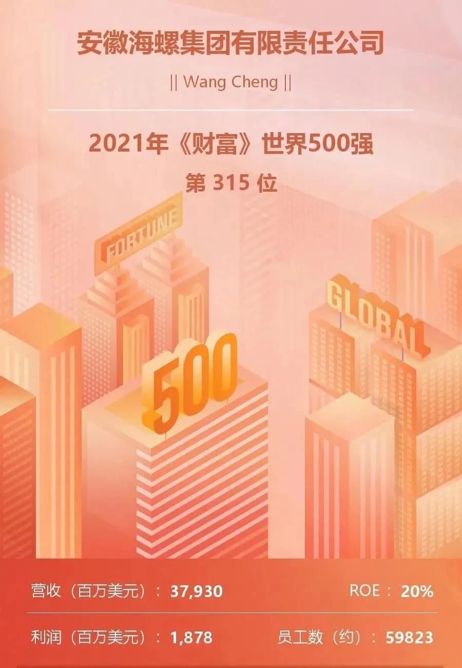 海螺集團(tuán)以379.29億美元的營(yíng)業(yè)收入位居第315位,連續(xù)三年進(jìn)入世界500強(qiáng),排名較上年大幅提升52位;