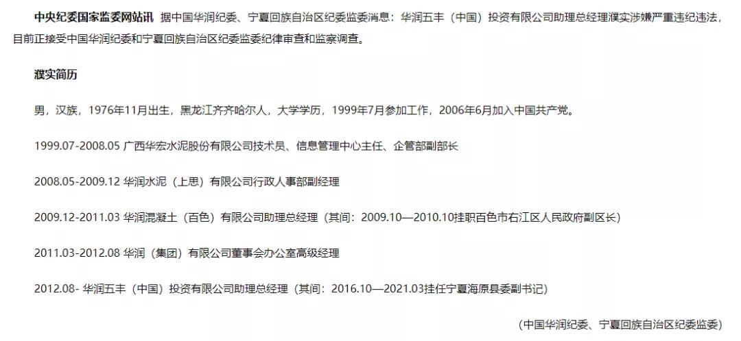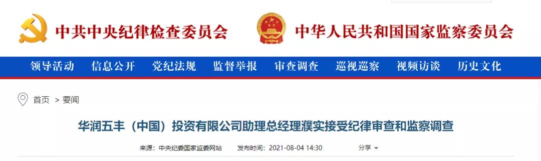 中央紀委國家監(jiān)委網(wǎng)站訊據(jù)中國華潤紀委、寧夏回族自治區(qū)紀委監(jiān)委消息:華潤五豐(中國)投資有限公司助理總經(jīng)理濮實涉嫌嚴重違紀違法,目前正接受中國華潤紀委和寧夏回族自治區(qū)紀委監(jiān)委紀律審查和監(jiān)察調(diào)查。
