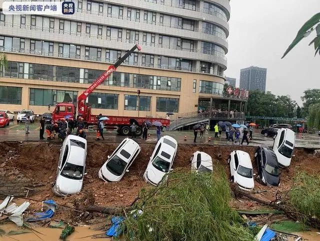7月12日14時(shí)58分,受強(qiáng)降雨影響,山東省濟(jì)南市高新區(qū)一處靠近泄洪溝的路面突然出現(xiàn)大面積坍塌,停在路邊的十余輛車(chē)墜落排洪溝,所幸未造成人員傷亡。