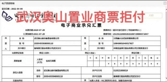 知情人士稱(chēng),“武漢奧山新印象置業(yè)有限公司的商票從2020年年底開(kāi)始,其拒付情況就比較嚴(yán)峻。有不少保理公司都沒(méi)太敢去接觸該企業(yè)的商票。一持票人所持有的2021.3.7日到期的奧山置業(yè)商票,還在拒付中。”