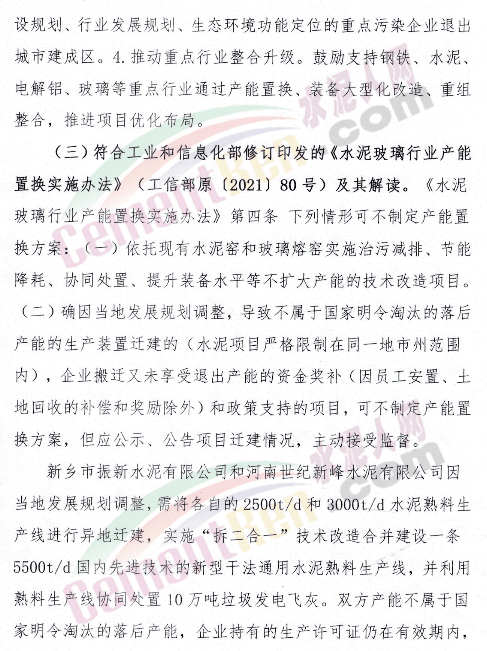 依據(jù)《國務(wù)院關(guān)于化解產(chǎn)能嚴(yán)重過剩矛盾的指導(dǎo)意見》(國發(fā)〔2013〕41號(hào))、工業(yè)和信息化部《水泥玻璃行業(yè)產(chǎn)能置換實(shí)施辦法操作問答》、工業(yè)和信息化部修訂印發(fā)的《水泥玻璃行業(yè)產(chǎn)能置換實(shí)施辦法》(工信部原〔2021〕80號(hào))及2021年7月20日工業(yè)和信息化部門戶網(wǎng)站公開發(fā)布的《水泥玻璃行業(yè)產(chǎn)能置換實(shí)施辦法》解讀和河南省人民政府《關(guān)于推進(jìn)城市建成區(qū)內(nèi)重污染工業(yè)企業(yè)搬遷改造的指導(dǎo)意見》(豫政辦〔2018〕79號(hào))等文件要求,現(xiàn)對(duì)新鄉(xiāng)市振新水泥有限公司一條日產(chǎn)2500噸新型干法通用水泥熟料生產(chǎn)線異地遷建技術(shù)改造實(shí)施方案進(jìn)行公示,歡迎社會(huì)公眾進(jìn)行監(jiān)督。
