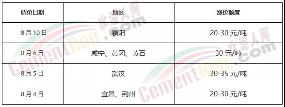 8月16日江西吉安地區(qū)主流品牌水泥通知價格上調(diào)30元/噸,下游需求漸恢復(fù)水泥價格再次上漲,兩輪累計漲價90元/噸,預(yù)計后期行情繼續(xù)保持穩(wěn)中偏強(qiáng)態(tài)勢。漲價后,江西永豐南方及贛州南方萬年青水泥PO42.5散裝水泥報價415元/噸。