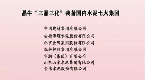 四、中國十大水泥集團(tuán)中七大集團(tuán)分布的26個(gè)省的300條生產(chǎn)線的20多個(gè)部位裝備了晶牛“三晶三化”設(shè)備,均收到理想效果