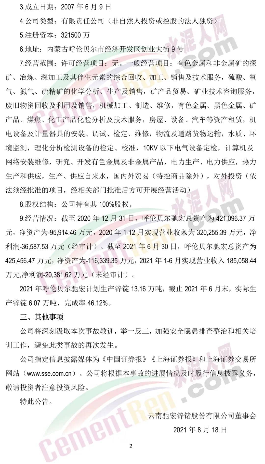 馳宏鋅鍺表示,對本次事故的不幸罹難者表示沉痛哀悼,并對罹難家屬表示歉意,相關(guān)善后工作正在進行之中。同時,將深刻汲取本次事故教訓(xùn),舉一反三,加強安全隱患排查整治和相關(guān)培訓(xùn)工作,避免此類事故的再次發(fā)生。