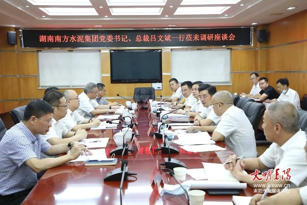 8月17日下午,湖南省衡陽市委副書記、耒陽市委書記賴馨正在市委常委會議室會見了湖南南方水泥集團(tuán)黨委書記、總裁呂文斌一行。雙方就推進(jìn)綠色建材產(chǎn)業(yè)園項(xiàng)目進(jìn)行會談。
