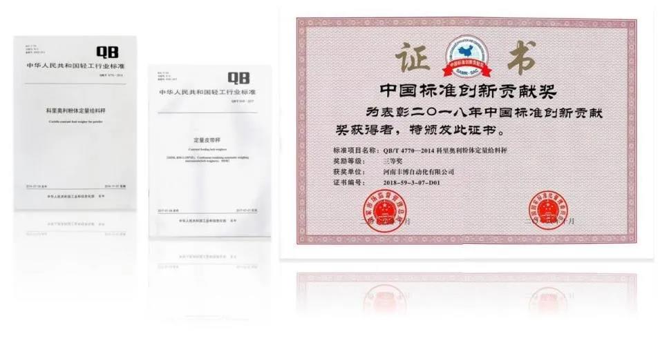 豐博自動化是一家從事動態(tài)計(jì)量行業(yè)20多年的老牌企業(yè),成立了動態(tài)計(jì)量研究院,并擁有完備的固體顆粒狀物料連續(xù)計(jì)量的實(shí)驗(yàn)裝置和先進(jìn)的粉體連續(xù)計(jì)量實(shí)驗(yàn)裝置。在計(jì)量研究上,榮獲多項(xiàng)國家專利及軟件著作權(quán)。并且,由經(jīng)河南省質(zhì)量技術(shù)監(jiān)督局推薦,豐博自動化負(fù)責(zé)牽頭領(lǐng)銜制定的行業(yè)標(biāo)準(zhǔn)《QB/T4770-2014科里奧利粉體定量給料秤》項(xiàng)目,榮獲2018年中國標(biāo)準(zhǔn)創(chuàng)新貢獻(xiàn)獎三等獎。
