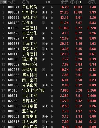 昨日(9月1日),水泥上市公司大爆發(fā),多股出現(xiàn)一字漲停。截止當(dāng)日收盤天山股份、華新水泥盤中漲停。