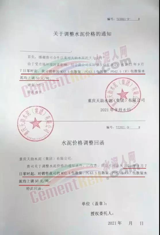 9月7日重慶綦江西南水泥、長(zhǎng)壽西南水泥、臺(tái)泥重慶公司等9家企業(yè)通知上調(diào)各標(biāo)號(hào)水泥價(jià)格50元/噸