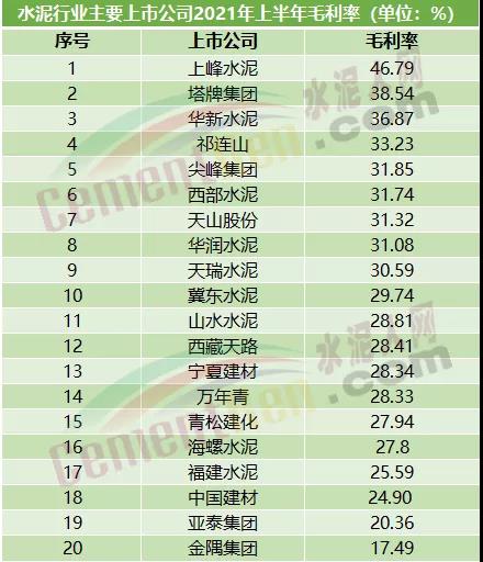 毛利率近50%,上峰水泥遠超海螺水泥