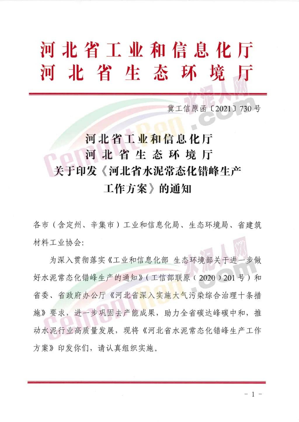日前,河北省工業(yè)和信息化廳聯(lián)合河北省生態(tài)環(huán)境廳發(fā)布關(guān)于印發(fā)《河北省水泥常態(tài)化錯(cuò)峰生產(chǎn)工作方案》的通知給各市(含定州、辛集市)工業(yè)和信息化局、生態(tài)環(huán)境局、省建筑材料工業(yè)協(xié)會(huì)稱,為深入貫徹落實(shí)《工業(yè)和信息化部生態(tài)環(huán)境部關(guān)于進(jìn)一步做好水泥常態(tài)化錯(cuò)峰生產(chǎn)的通知》(工信部聯(lián)原〔2020)201號(hào))和省委、省政府辦公廳《河北省深入實(shí)施大氣污染綜合治理十條措施》要求,進(jìn)一步鞏固去產(chǎn)能成果,助力全省碳達(dá)峰碳中和,推動(dòng)水泥行業(yè)高質(zhì)量發(fā)展,印發(fā)《河北省水泥常態(tài)化錯(cuò)峰生產(chǎn)工作方案》,請(qǐng)認(rèn)真組織實(shí)施。