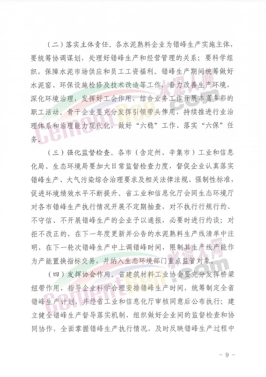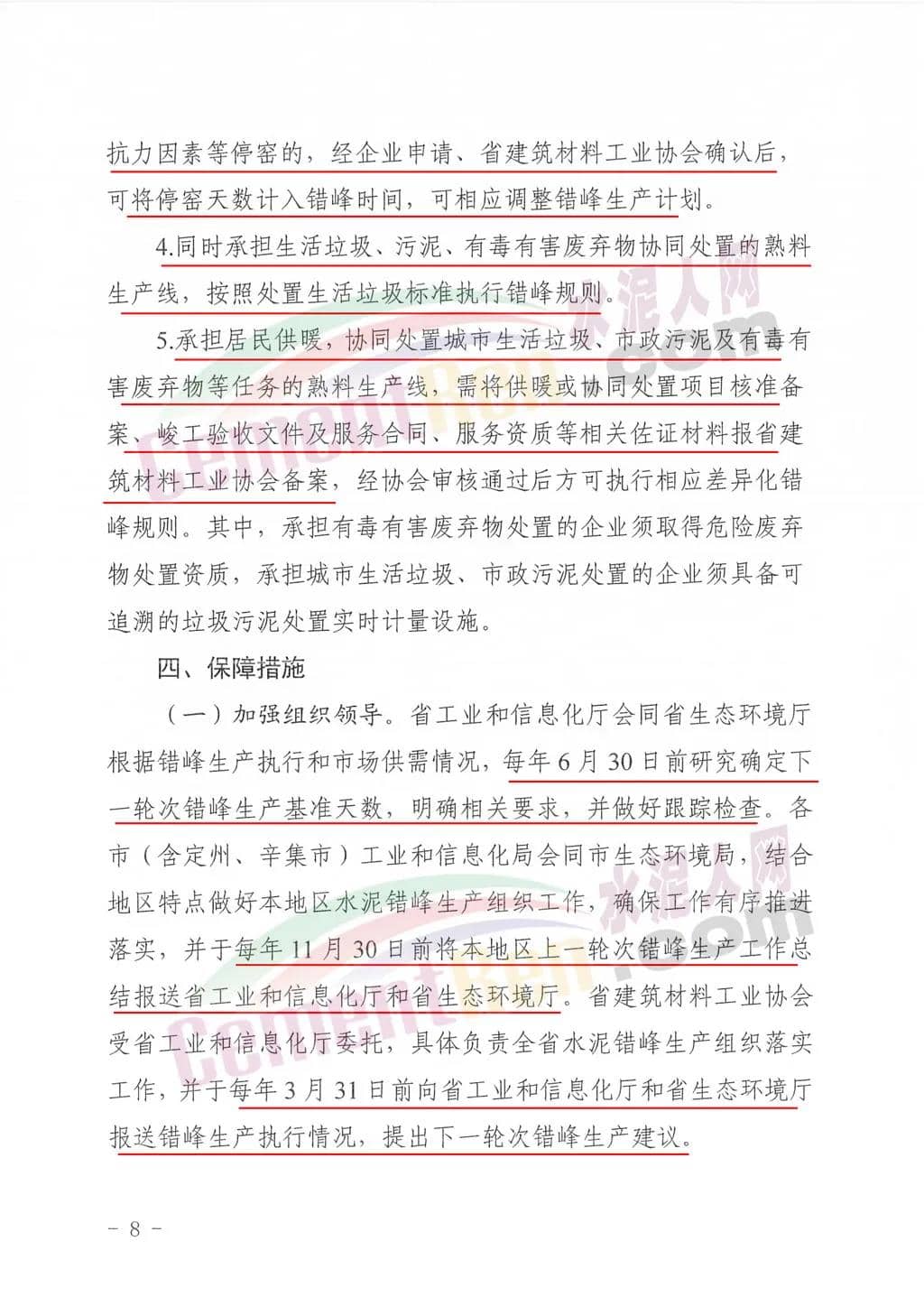 3.水泥熟料企業(yè)因重污染天氣應(yīng)急響應(yīng)、重大活動(dòng)及其它不可抗力因素等停窯的,經(jīng)企業(yè)申請(qǐng)、省建筑材料工業(yè)協(xié)會(huì)確認(rèn)后,可將停窯天數(shù)計(jì)入錯(cuò)峰時(shí)間,可相應(yīng)調(diào)整錯(cuò)峰生產(chǎn)計(jì)劃。