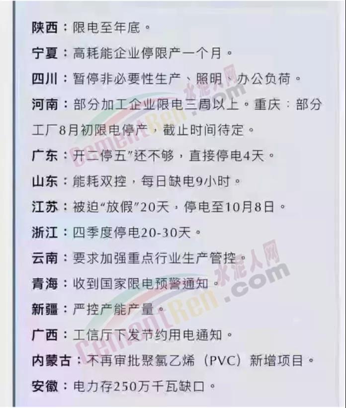 “不定期、不定時(shí)、無(wú)計(jì)劃、無(wú)通知停電限電,或?qū)⒊掷m(xù)到2022年3月份”、“停電、停水或變?yōu)槌B(tài)”、“不僅工業(yè)用電被限,民用電也一起被限制了”、“水泥價(jià)格還會(huì)上漲”... ...