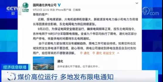 最近國(guó)網(wǎng)吉林、通化的供電公司都在通告中提到,由于電力緊張沒(méi)有緩解趨勢(shì),限電工作可能會(huì)持續(xù)。