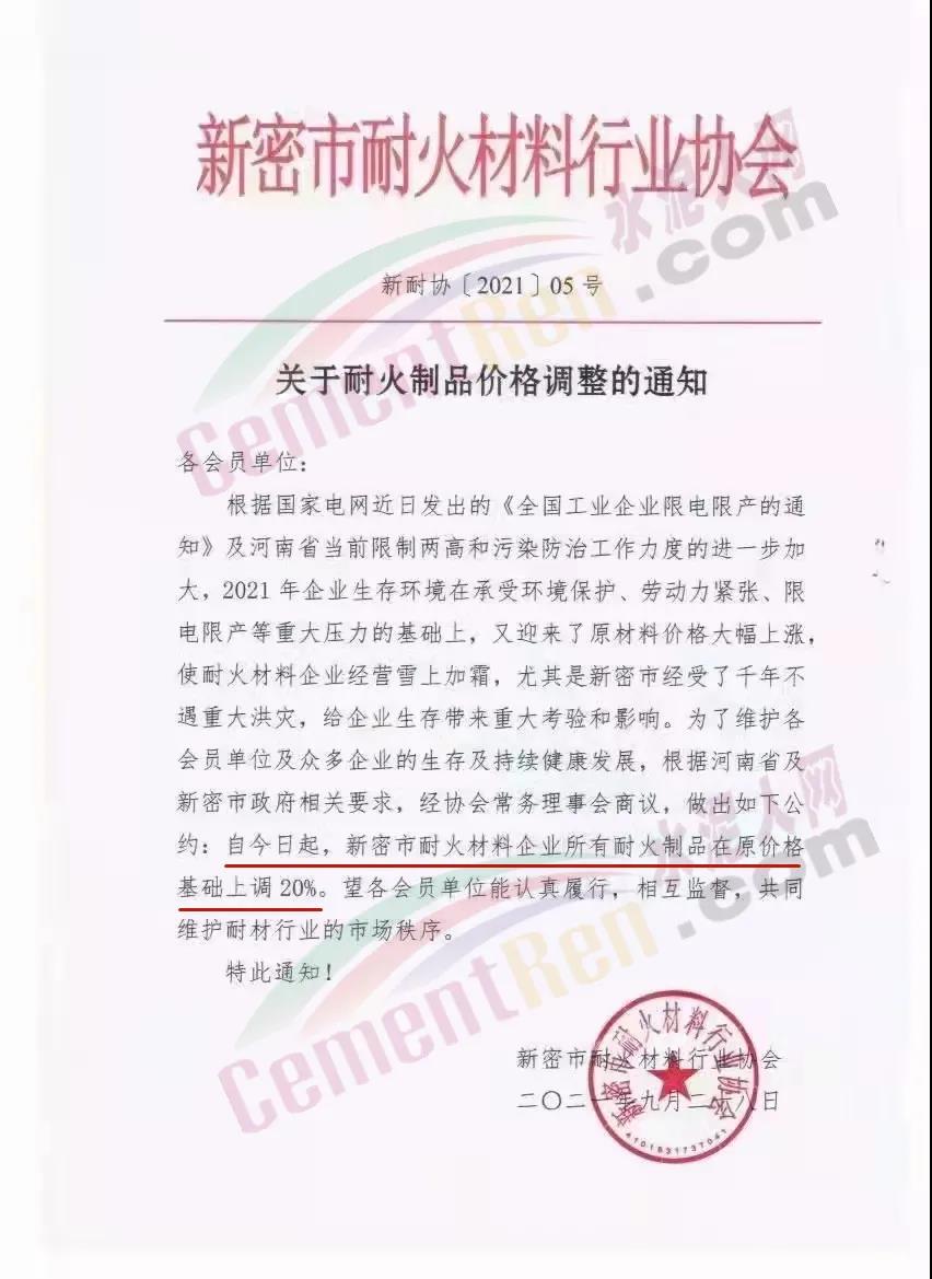 28日,全國耐材制造基地新密發(fā)出調(diào)價(jià)通知,所有耐火制品在原價(jià)基礎(chǔ)上上調(diào)20%;棕剛玉材料從750元到800元/噸,而且缺貨;磷酸最新價(jià)格20000元/噸,相較之前提價(jià)13000元/噸。