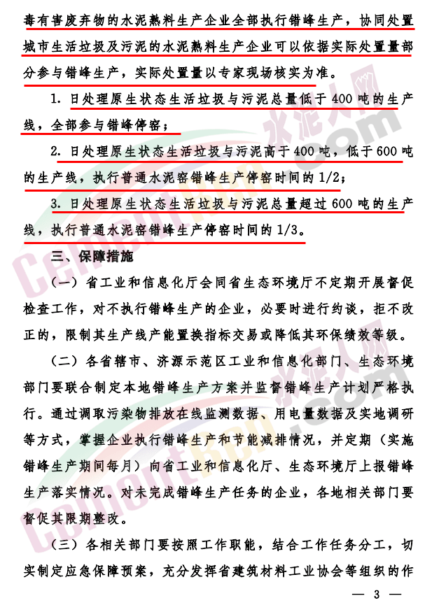 3.日處理原生狀態(tài)生活垃圾與污泥總量超過600噸的生產(chǎn)線,執(zhí)行普通水泥窯錯峰生產(chǎn)停窯時間的1/3。