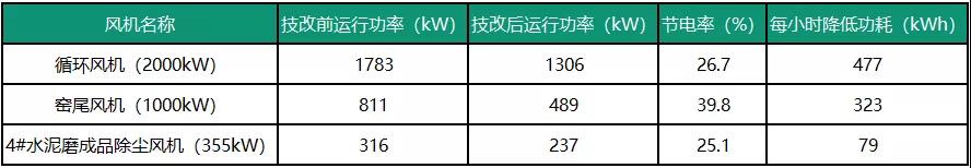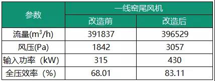 寧鄉(xiāng)南方3200t/d線循環(huán)風(fēng)機(jī)、窯尾風(fēng)機(jī)運(yùn)行效率較低,分別為69.5%、48.30%,經(jīng)瑞晨環(huán)保改造后,設(shè)備運(yùn)行穩(wěn)定,風(fēng)機(jī)運(yùn)行效率均達(dá)80%以上。