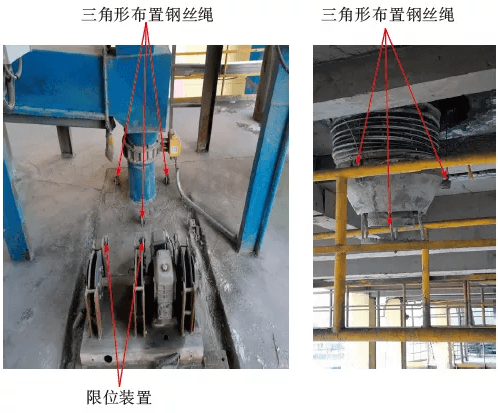 1.設(shè)備更新,將原散裝機(jī)料筒升降裝置全部拆除,保留裝載頭及下料筒,更換為新型高效無塵散裝機(jī),升降結(jié)構(gòu)是由3根鋼絲繩成三角形均勻布置在料筒外側(cè),而且設(shè)計了升降限位保護(hù)裝置,保證了鋼絲繩使用壽命,解決繩孔冒灰問題,降低了職工勞動強(qiáng)度;