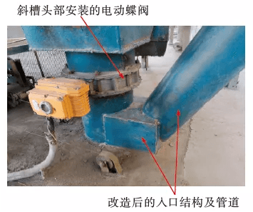 3.在斜槽頭部出料口位置加裝電動蝶閥,裝車完成后關(guān)閉電動蝶閥,封堵了斜槽內(nèi)預(yù)留物料及收塵器內(nèi)物料,徹底解決了下料口漏灰問題;