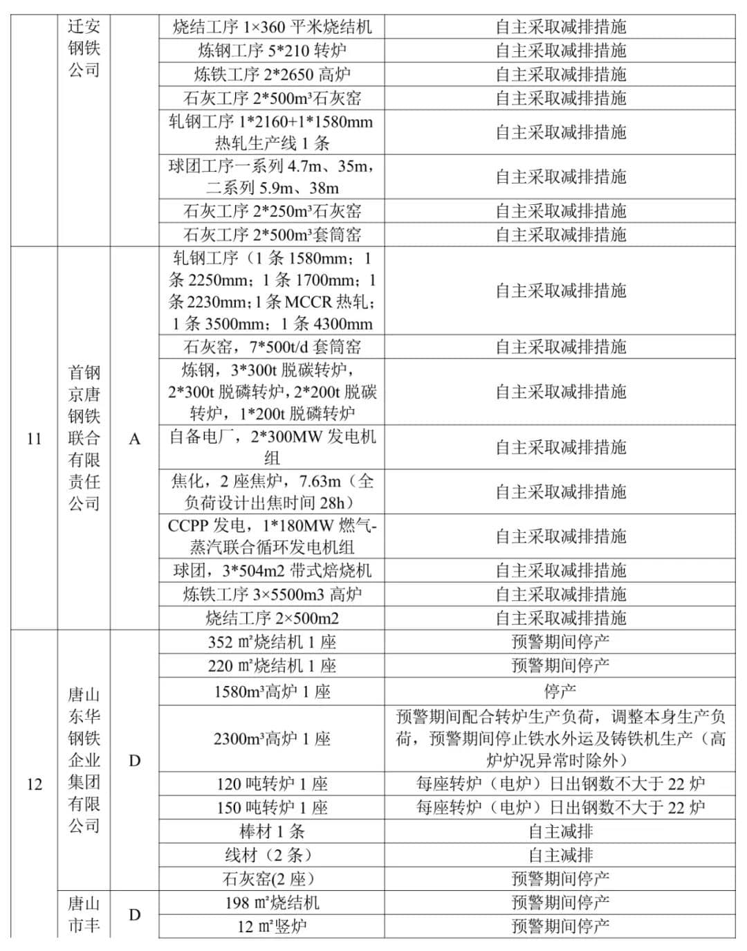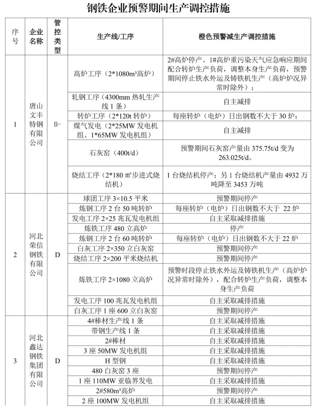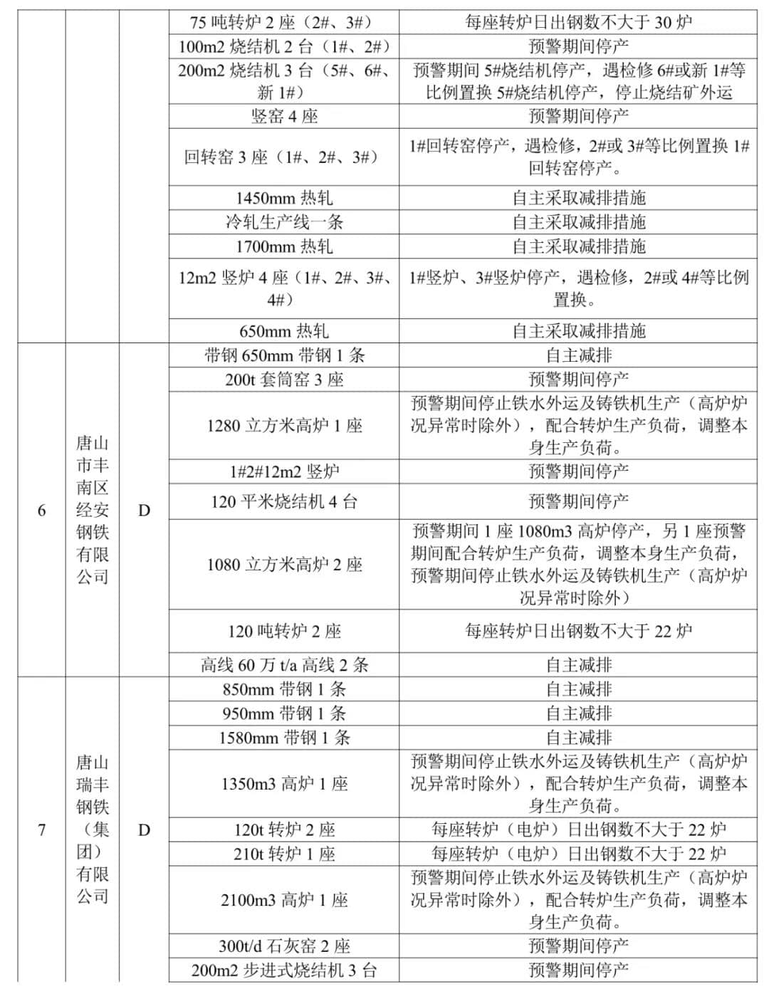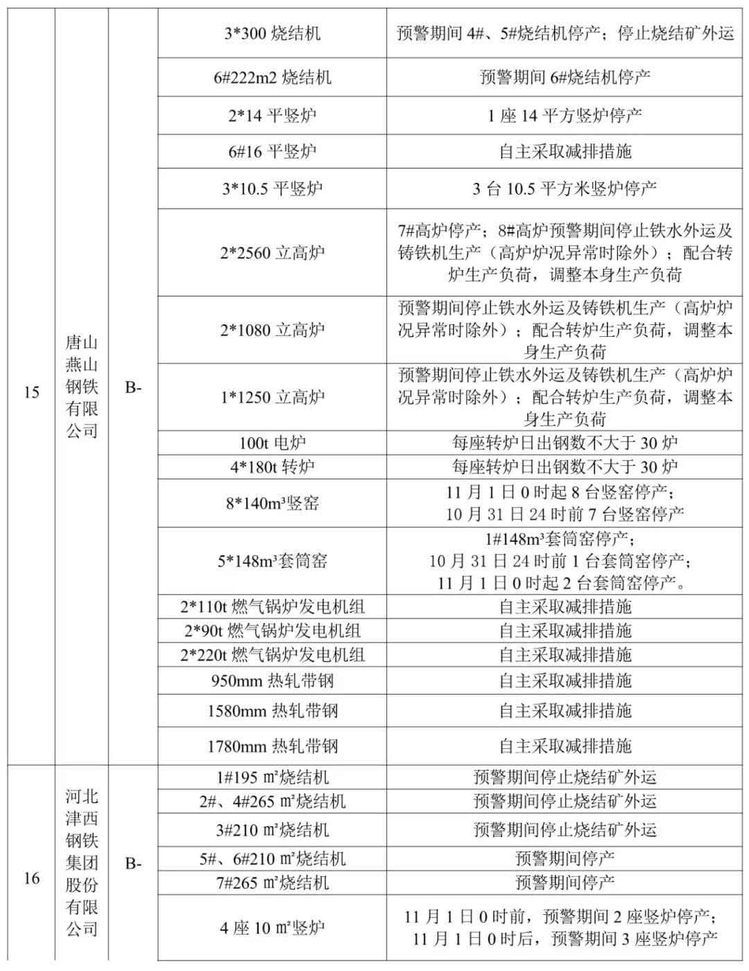 水泥熟料企業(yè)(特種水泥除外)。冀東啟新、冀東三友、冀東灤州、冀東唐山分公司、泓泰水泥自主減排;飛龍水泥、燕東水泥、燕南水泥、曙光強興水泥、磐石水泥、圣龍水泥、耀東水泥、弘也水泥旋窯實施生產(chǎn)調(diào)控。