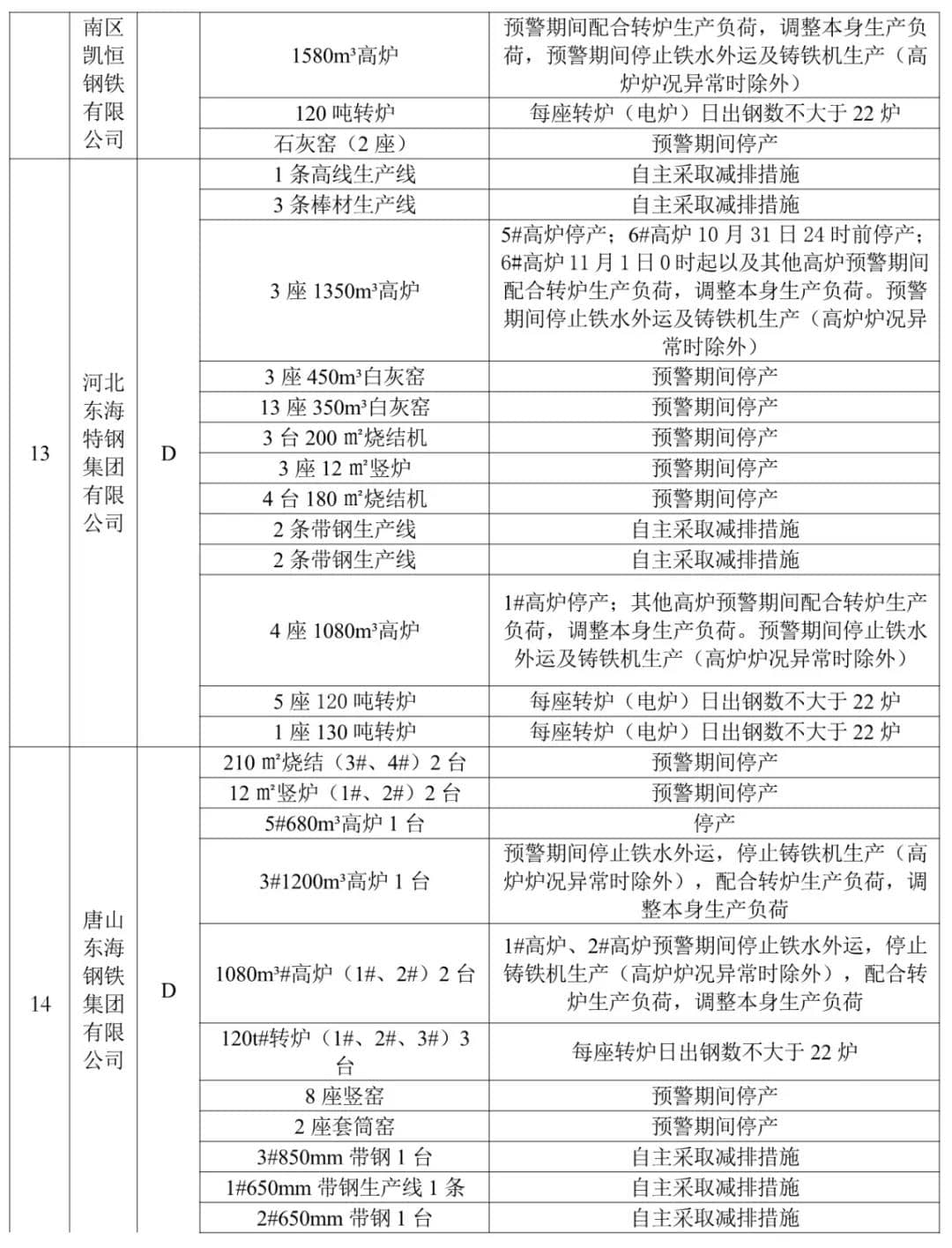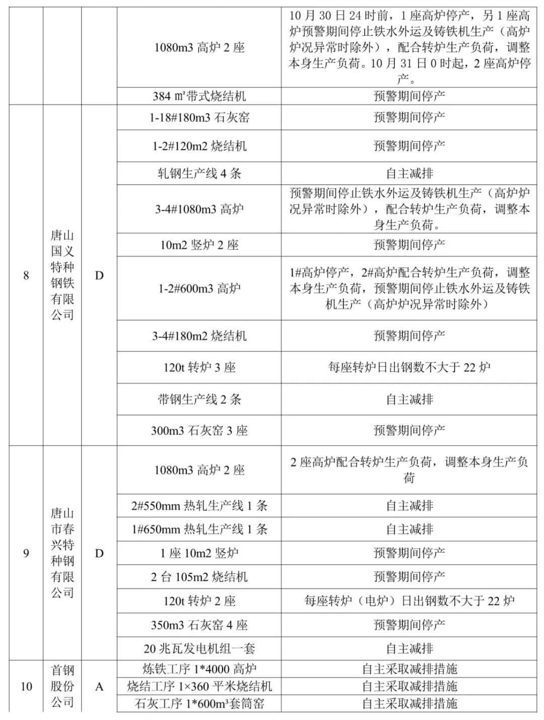 10、獨立軋鋼(含冷軋):實施生產(chǎn)調(diào)控。