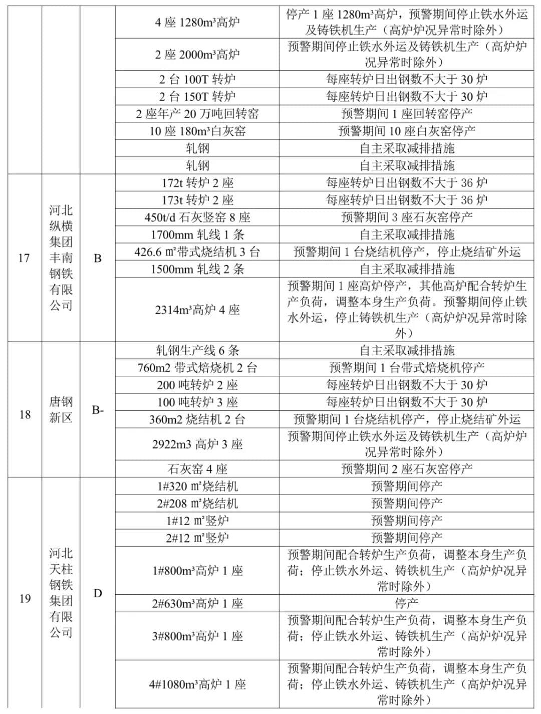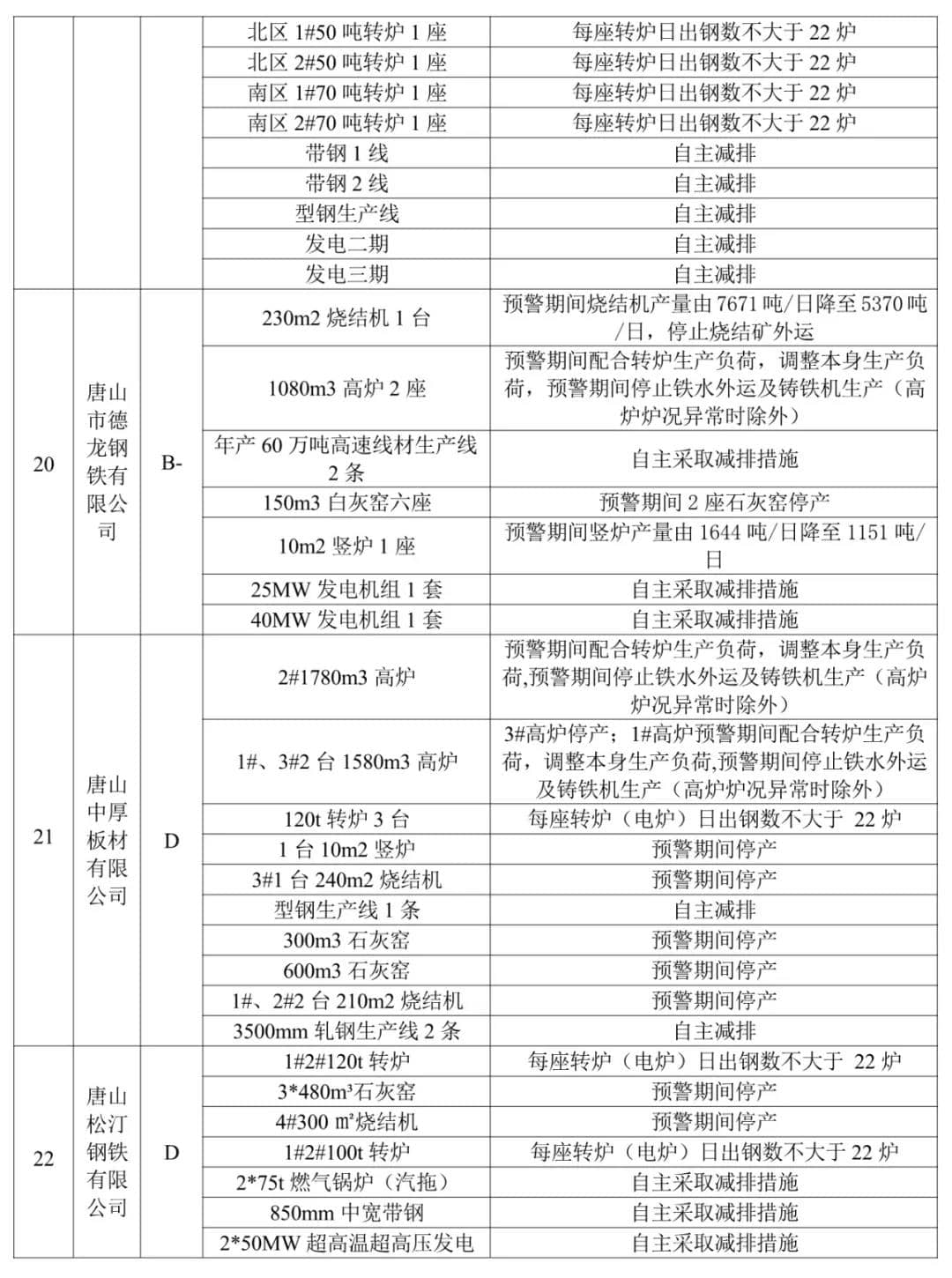 2、水泥熟料企業(yè)企業(yè)。冀東唐山分公司、泓泰水泥2家A級企業(yè)自主減排;飛龍水泥、燕東水泥實施生產(chǎn)調(diào)控。