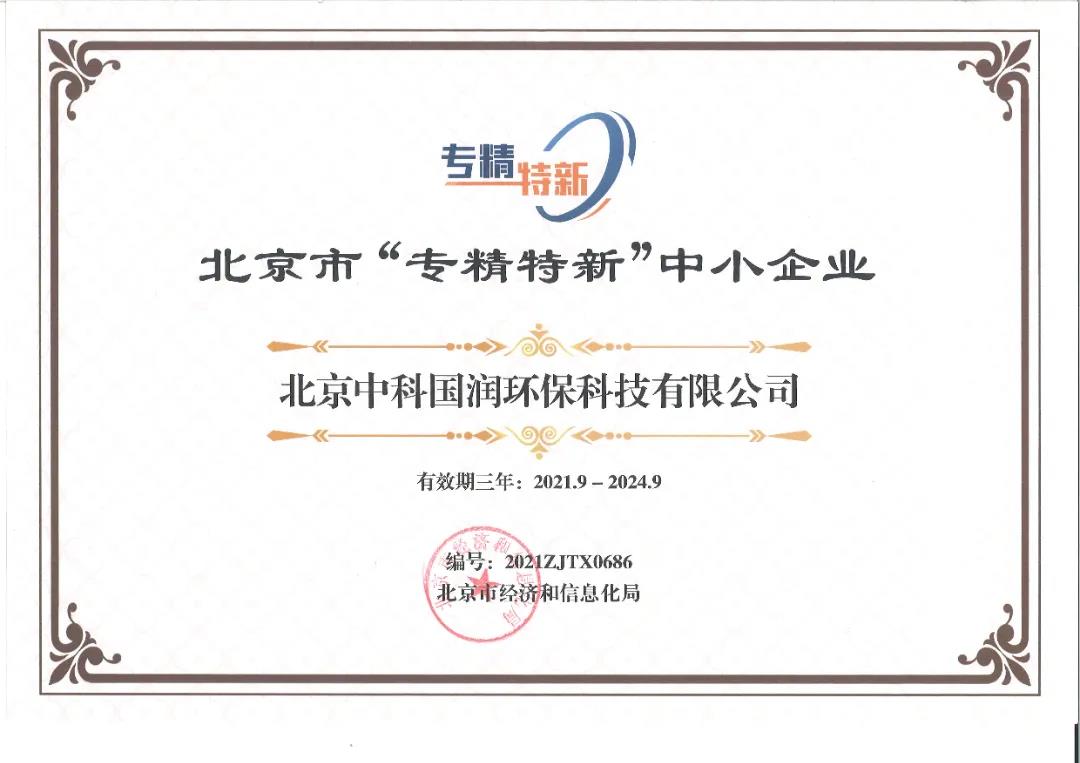 2021年9月14日,北京市經濟和信息化局公布了北京市2021年度第五批“專精特新”中小企業(yè)名單,北京中科國潤環(huán)保科技有限公司成功入選!