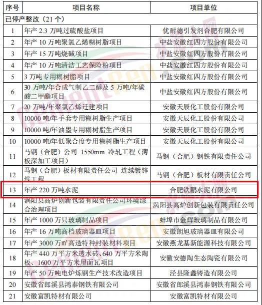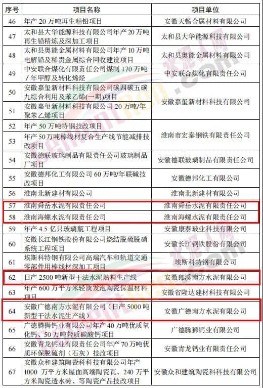 ?全省存量“兩高”問題項(xiàng)目梳理排查表中包含海螺水泥、南方水泥、鐵鵬水泥、眾城水泥旗下多個(gè)項(xiàng)目。