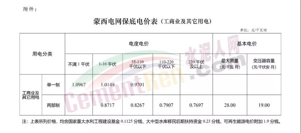內(nèi)蒙古發(fā)改委提出《關(guān)于明確蒙西地區(qū)電力市場(chǎng)交易用戶保底電價(jià)的通知》中的保底電價(jià)比原有電價(jià)上浮了80%。蒙西的新保底電價(jià)如下表所示: