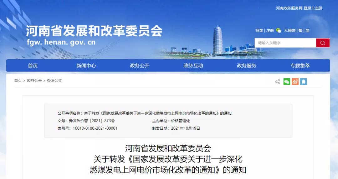 河南省內(nèi)燃煤發(fā)電電量原則上全部進(jìn)入市場(chǎng),上網(wǎng)電價(jià)通過(guò)市場(chǎng)交易在“基準(zhǔn)價(jià)+上下浮動(dòng)”范圍內(nèi)形成,其中,基準(zhǔn)價(jià)為0.3779元/千瓦時(shí),上下浮動(dòng)原則上均不超過(guò)20%。高耗能企業(yè)市場(chǎng)交易電價(jià)不受上浮20%限制,電力現(xiàn)貨價(jià)格不受上下浮動(dòng)不超過(guò)20%限制。自2021年10月15日起,全面取消工商業(yè)目錄銷售電價(jià),僅保留居民生活、農(nóng)業(yè)生產(chǎn)目錄銷售電價(jià)。自2021年10月15日起,工商業(yè)用戶原則上全部進(jìn)入電力市場(chǎng)。