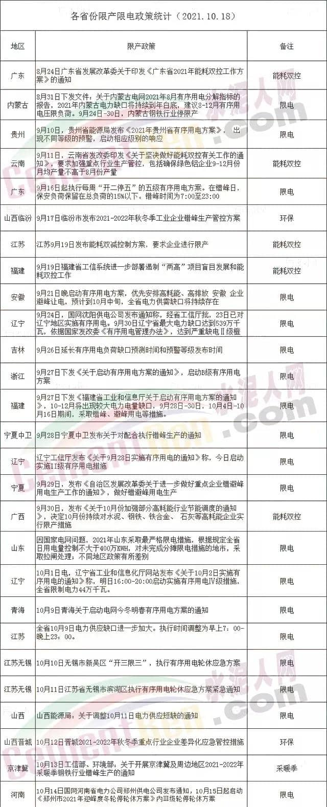 11月3日,安徽省發(fā)布《“兩高”重點(diǎn)企業(yè)2021年內(nèi)用能(電)管控計(jì)劃》要求相關(guān)主管部門(mén)做好超計(jì)劃用能(電)企業(yè)限電工作。文件附件各市“兩高”重點(diǎn)企業(yè)名單中包括海螺水泥、南方水泥、中材水泥、天瑞水泥、上峰水泥、磊達(dá)水泥等近百家水泥及混凝土生產(chǎn)企業(yè)。存量“兩高”問(wèn)題項(xiàng)目梳理排查表中包含海螺水泥、南方水泥、鐵鵬水泥、眾城水泥等多個(gè)項(xiàng)目。