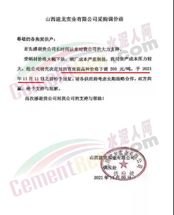 山西晉城鋼鐵控股集團有限公司告知函稱,由于鋼材成本嚴(yán)重倒掛,鋼材需求低迷,企業(yè)生產(chǎn)成本壓力較大。為了穩(wěn)定供需雙方長期的合作關(guān)系,企業(yè)決定對焦炭采購價格進(jìn)行調(diào)整。對所有焦炭含稅承兌出廠價下調(diào)200元/噸。