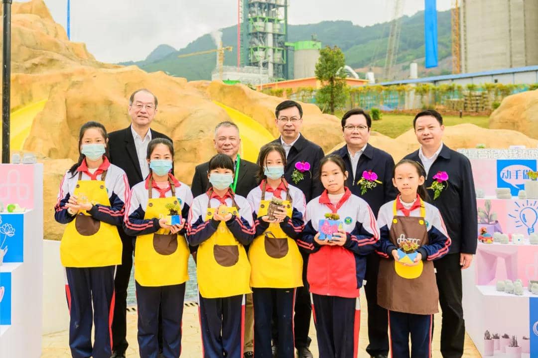 眾嘉賓與臺(tái)泥韶關(guān)廠周邊小學(xué)生以及臺(tái)泥環(huán)保大使GEMMA圓寶慶賀戲水樂園開園