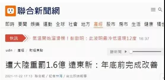 臺灣遠東集團在大陸投資企業(yè)被罰款,當(dāng)事企業(yè)回應(yīng):將虛心面對,防止類似事情再發(fā)生