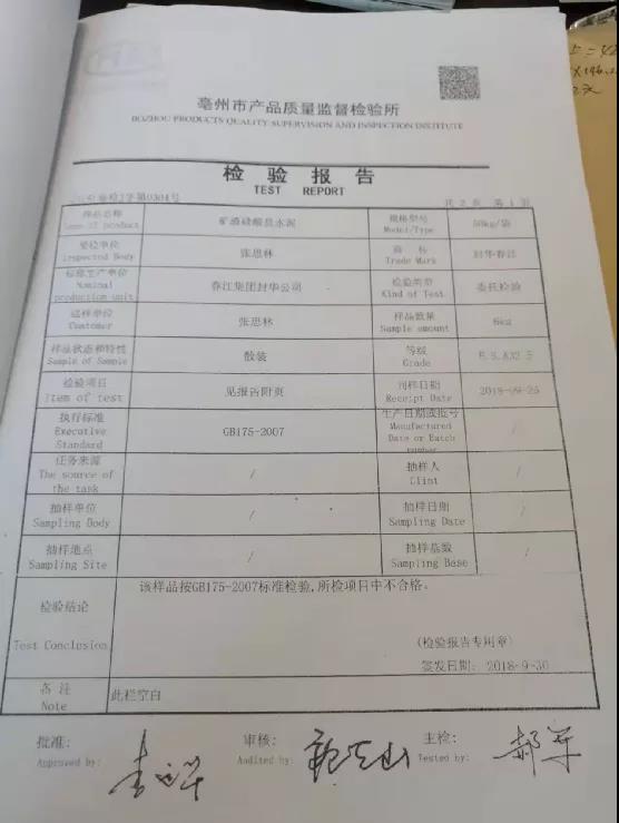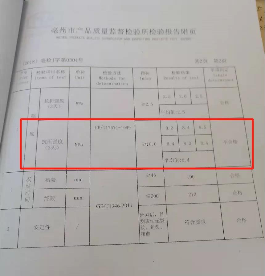 在此期間,消費(fèi)者通過質(zhì)量監(jiān)督檢測部門檢測,確認(rèn)水泥質(zhì)量不合格。檢驗(yàn)報告如下: