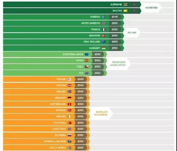 “碳中和、碳達(dá)峰”是全球各國(guó)的共識(shí),目前已有數(shù)十個(gè)國(guó)家和地區(qū)提出了“零碳”或“碳中和”的氣候目標(biāo),Energy & Climate Intelligence Unit 的凈零排放跟蹤表統(tǒng)計(jì)了各個(gè)國(guó)家進(jìn)展情況,包括:已實(shí)現(xiàn)的2個(gè)國(guó)家,已立法的6個(gè)國(guó)家,處于立法中狀態(tài)的包括歐盟(作為整體)和其他3個(gè)國(guó)家。