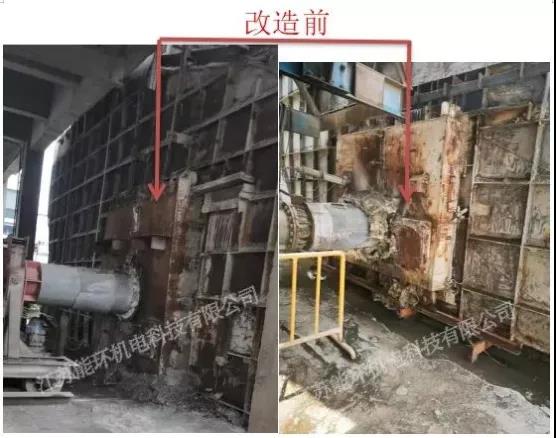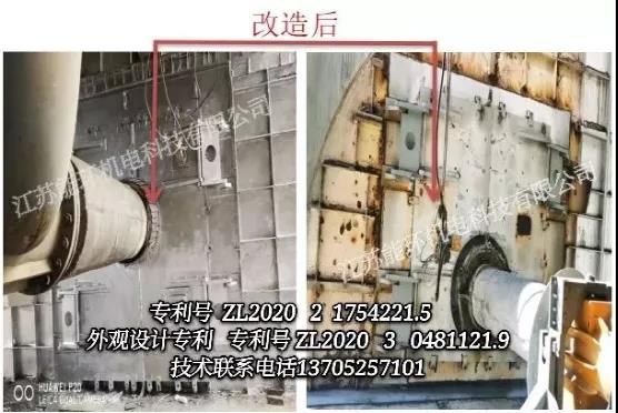 針對(duì)水泥回轉(zhuǎn)窯窯頭窯門結(jié)構(gòu)及密封面臨的問題,江蘇能環(huán)從節(jié)能環(huán)保,減少崗位工人工作量及安全方便等因素考量,研制出多重鉸軸式雙推拉門+抱箍式+軟密封噴煤管新型窯頭密封門,該新型窯門能夠適應(yīng)窯頭罩熱脹冷縮等空間要求,耐熱鋼魚鱗片能保持與噴煤管在運(yùn)動(dòng)、變形等情況下均能緊密貼合,實(shí)現(xiàn)無間隙密封,能有效解決回轉(zhuǎn)窯窯頭窯門密封效果不佳引起的漏風(fēng)、漏料、污染環(huán)境等問題。下面是某水泥廠改造前與改造后的情況對(duì)比: