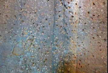 在殼體金屬表面產(chǎn)生大量點(diǎn)蝕坑,是氯離子腐蝕最主要的腐蝕特征。殼體應(yīng)力集中的區(qū)域,Cl-的存在還會加速應(yīng)力腐蝕的發(fā)展,使得殼體基材快速斷裂失效。夾角等細(xì)小縫隙區(qū)域,Cl-會加速縫隙腐蝕,快速破壞殼體基材。