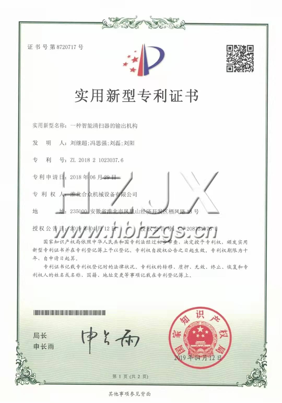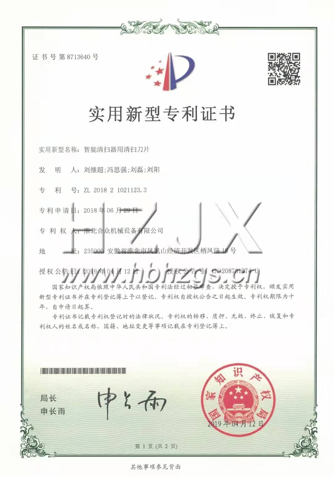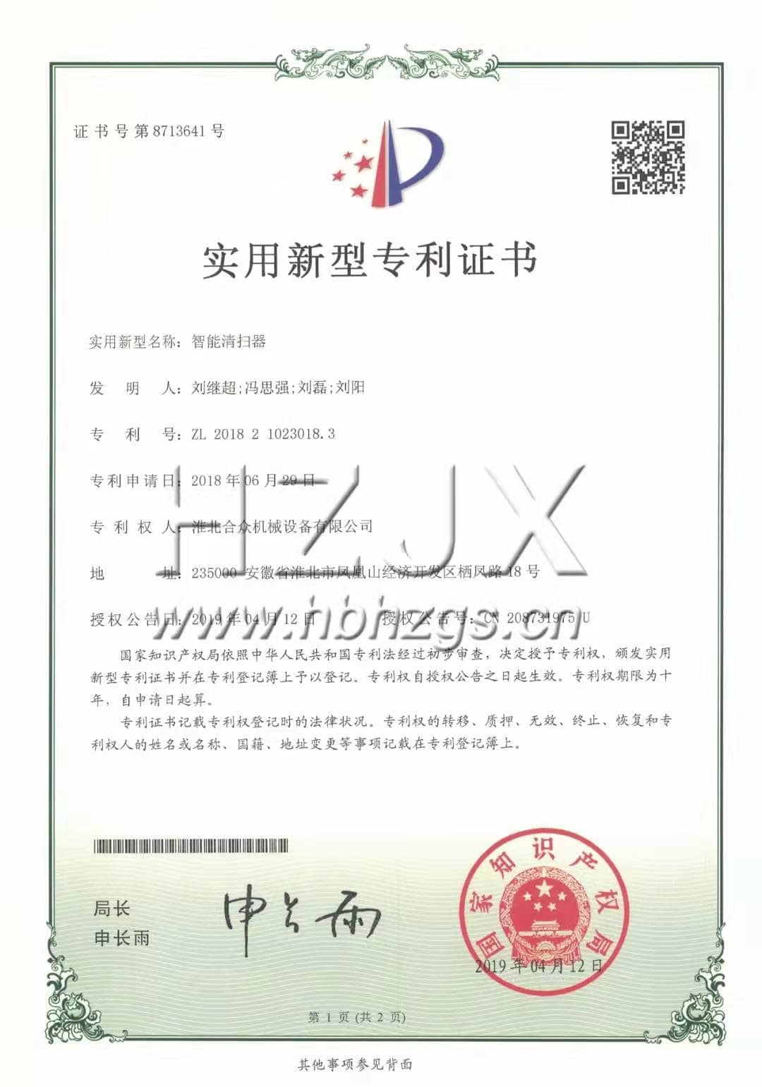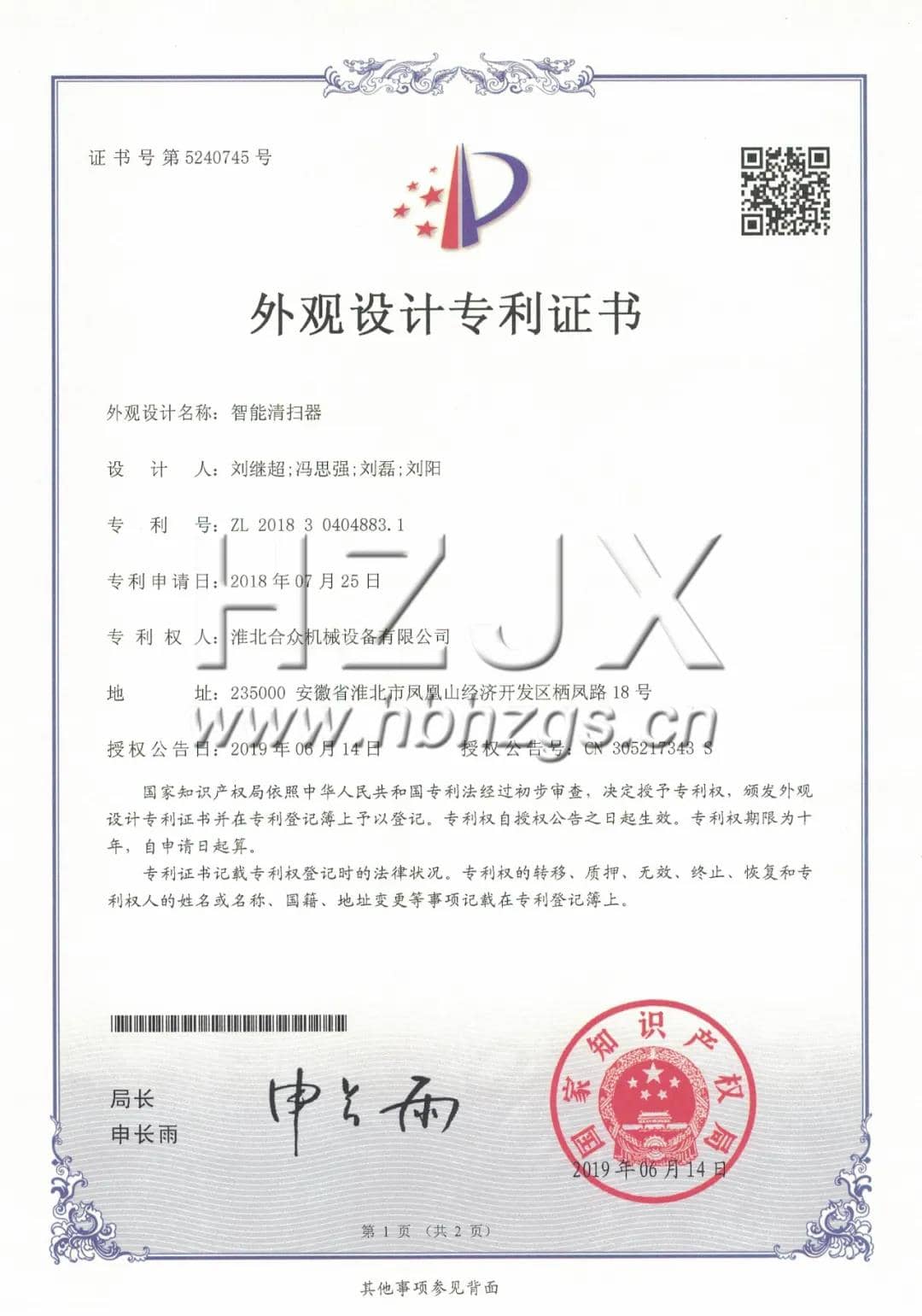 1.智能清掃裝置為淮北合眾自主研發(fā)產(chǎn)品,為全球首創(chuàng),屬于行業(yè)首例產(chǎn)品,并擁有8項(xiàng)專利;