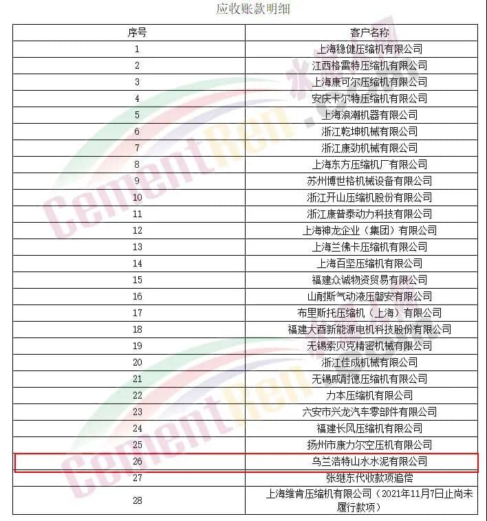 為確保資產(chǎn)利用最大化,確保資產(chǎn)利用最大化,最大限度地保障債權(quán)人、員工等各方利益,維護(hù)社會(huì)穩(wěn)定,根據(jù)出資人申請(qǐng),管理人通過公開招募投資人,按照法治化、市場(chǎng)化原則,對(duì)債務(wù)人進(jìn)行破產(chǎn)重整。水泥人網(wǎng)發(fā)現(xiàn)方案公布的應(yīng)收賬款明細(xì)中,赫然出現(xiàn)烏蘭浩特山水水泥有限公司。