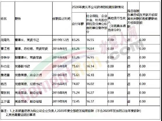 (不含2020年發(fā)放的以往年度薪酬)