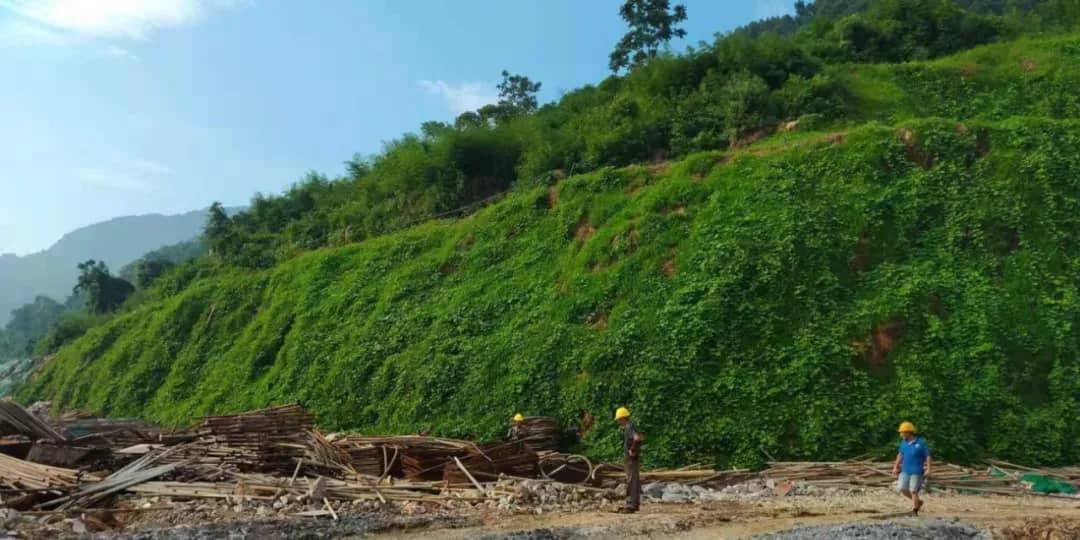 加工區(qū)邊坡均為巖質(zhì)邊坡,噴播效果差,給邊坡生態(tài)修復帶來了較大的困難。針對存在的困難,項目部制定專項施工方案,有效地提高了噴播的效果,得到了業(yè)主的一致好評。