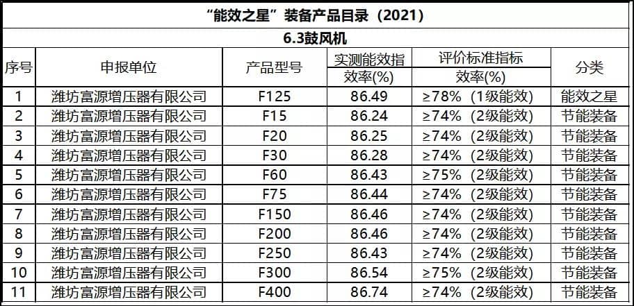 日前,工信部公示了《國家工業(yè)節(jié)能裝備及“能效之星”裝備產(chǎn)品目錄(2021)》,其中,濰坊富源增壓器有限公司(以下簡稱“濰坊富源”)申報(bào)的具有自主知識(shí)產(chǎn)權(quán)的12款型號(hào)空氣懸浮鼓風(fēng)機(jī)全部入圍,數(shù)量位居行業(yè)首位。
